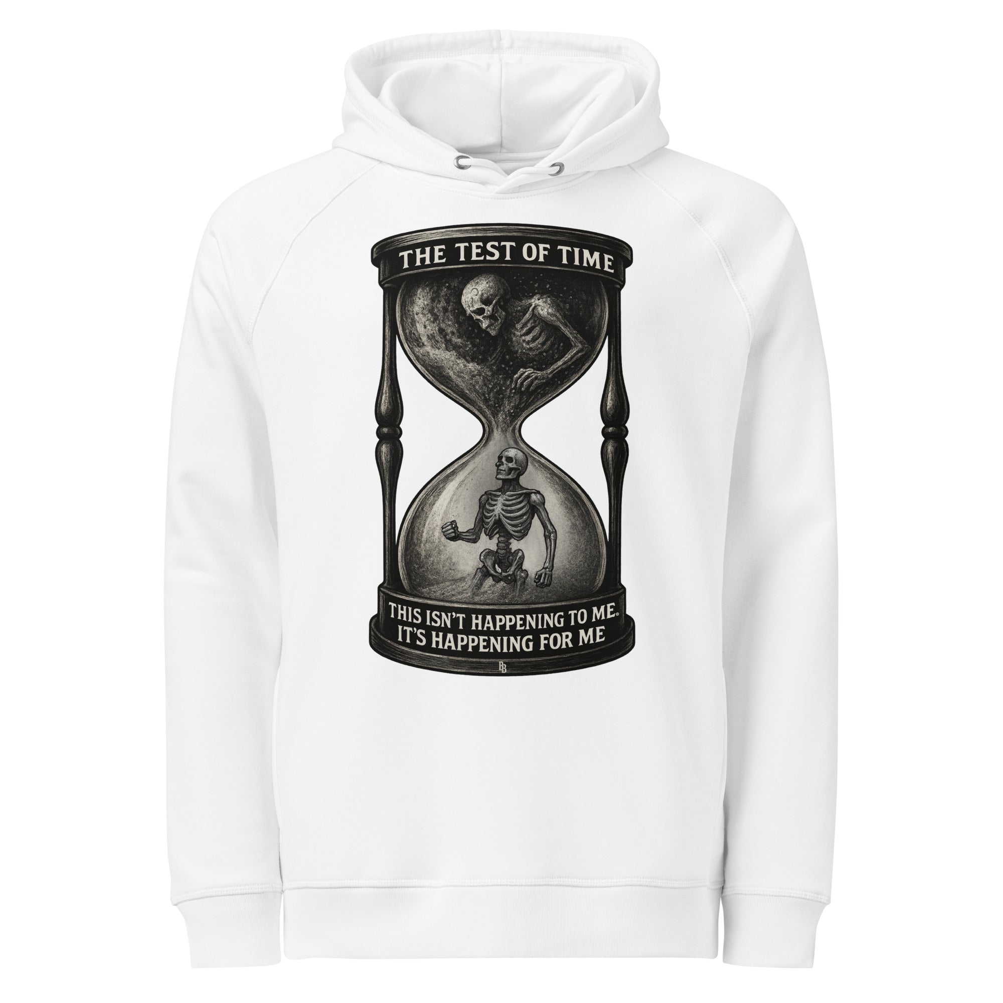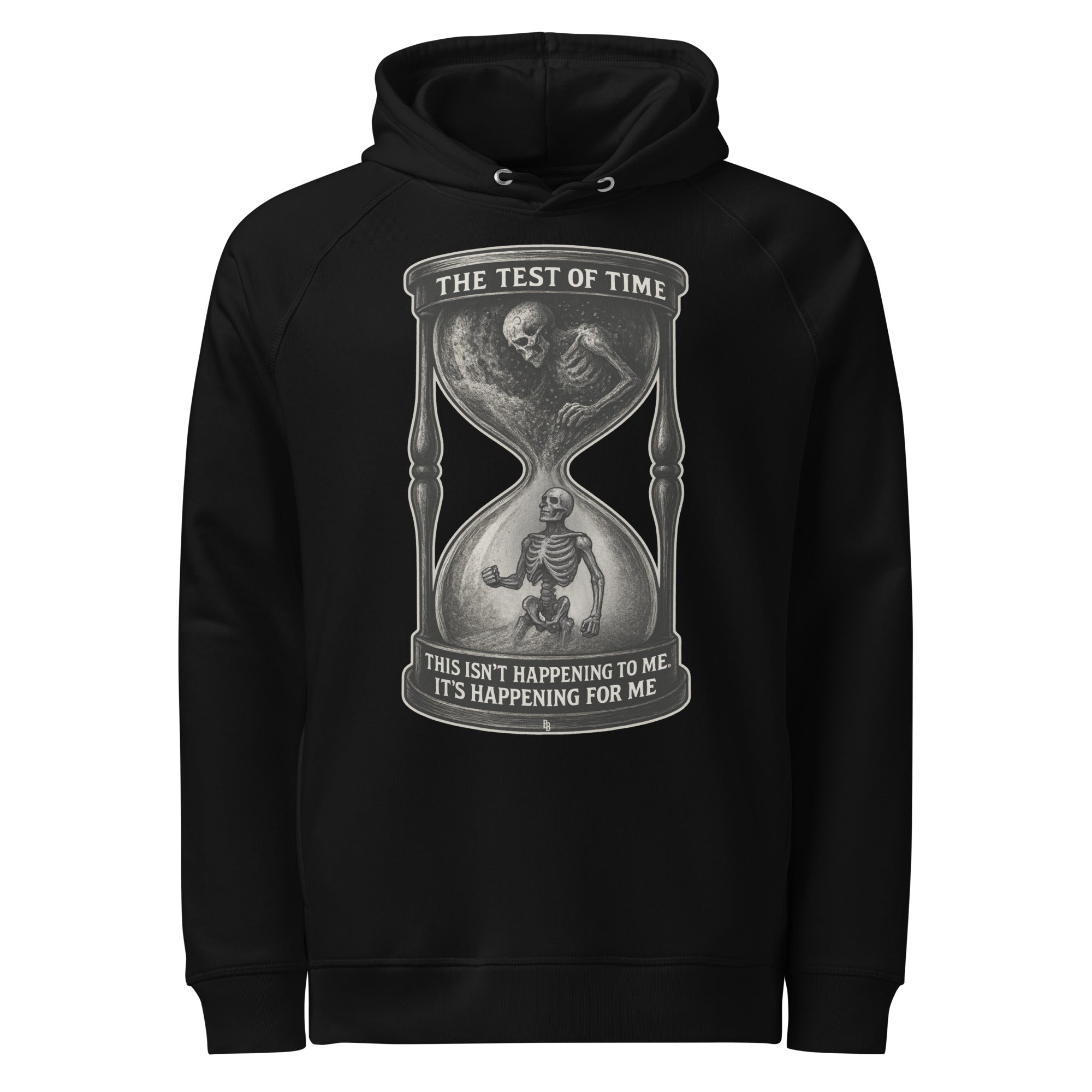 This gritty black-and-white piece captures a skeleton standing strong inside an hourglass, symbolizing the trials we all face and the truth that challenges shape us, not break us. For those who understand that every setback is fuel for the comeback, this is your armor.